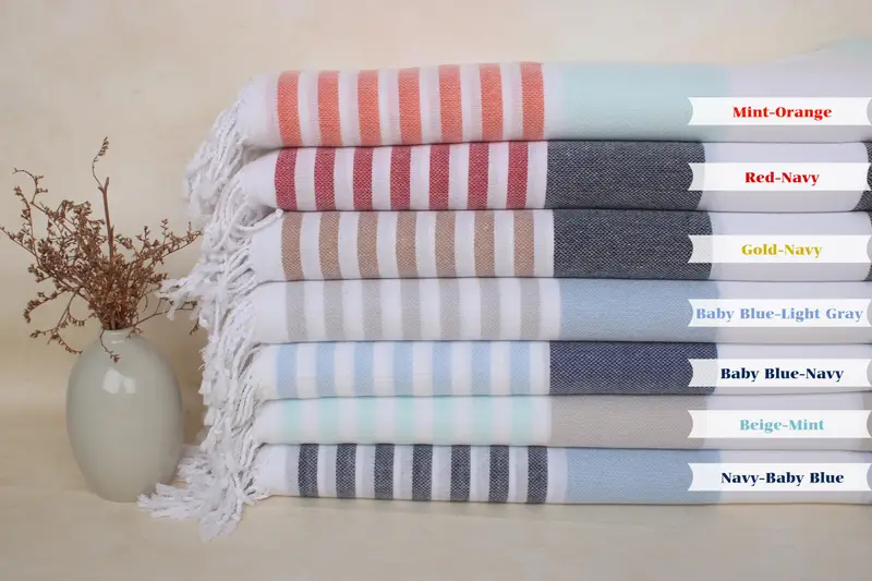 Toalla de playa personalizada de algodón orgánico Rayas beige, 40x71 pulgadas