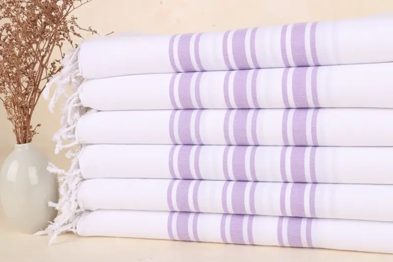 Toalla de playa personalizada de algodón turco a rayas moradas, 40x71 pulgadas