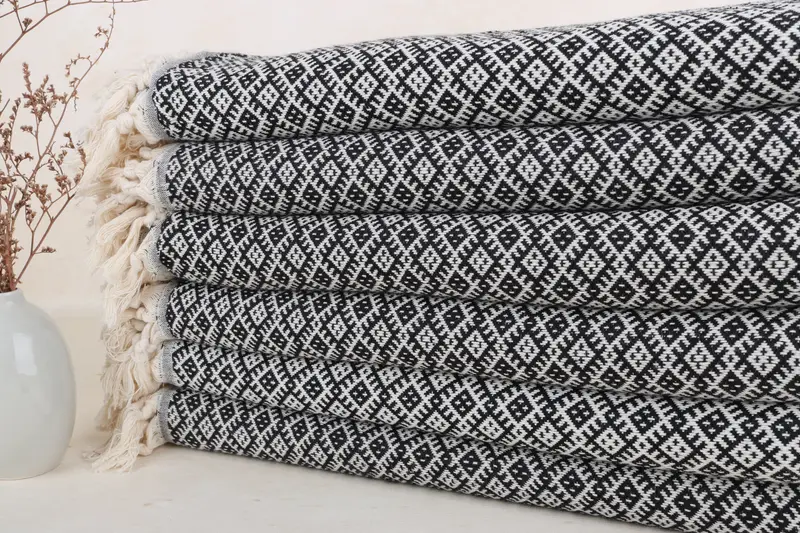Toalla de playa turca personalizada, negra con patrón de diamantes, 40 x 71 pulgadas