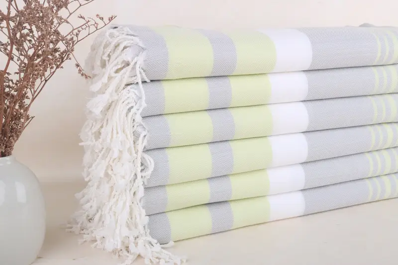 Toalla de playa con monograma a rayas gris y verde pistacho, 40 x 71 pulgadas