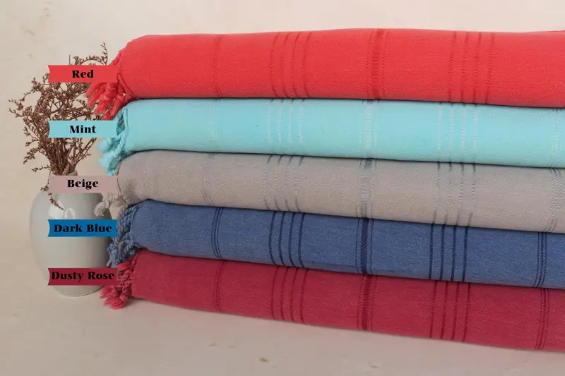 Toalla de Playa Personalizada de Algodón Orgánico Rayas Beige, 36x63 Pulgadas