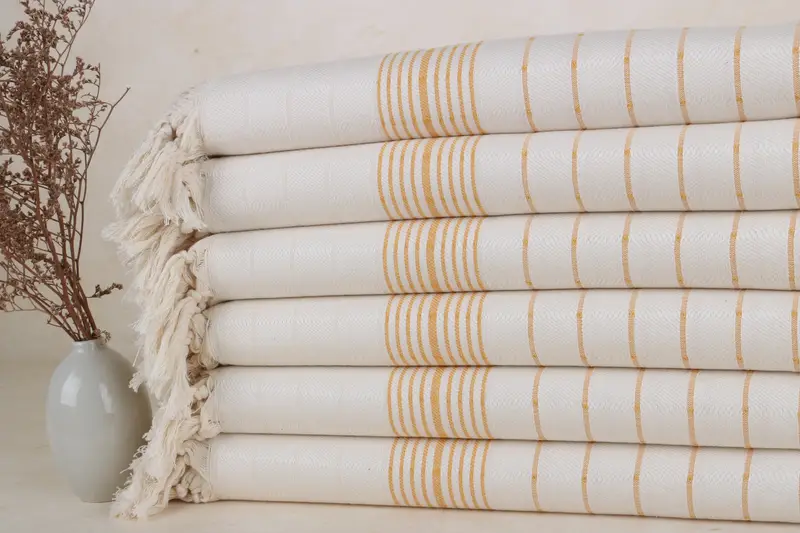Toalla de playa personalizada con monograma, color mostaza, a rayas, orgánica, 40 x 71 pulgadas