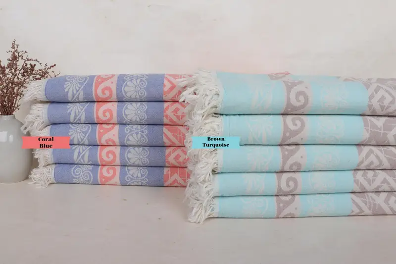Toalla geométrica Toalla de playa de algodón orgánico Beige, 36x70 pulgadas