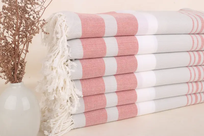 Toalla de playa personalizada a rayas gris ladrillo, algodón orgánico, 40 x 71 pulgadas