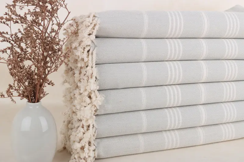 Toalla de Playa Algodón Turco Rayas Gris Claro, 40x67 Pulgadas