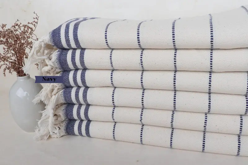 Toalla de playa de algodón orgánico a rayas, color beige, 36 x 67 pulgadas