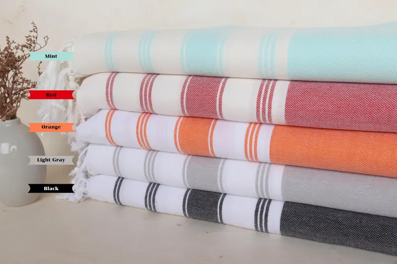 Toalla de playa con monograma de algodón orgánico a rayas beige, 40 x 70 pulgadas