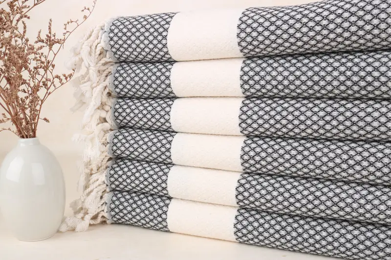 Toalla de playa personalizada Chevron negro beige, 36x67 pulgadas