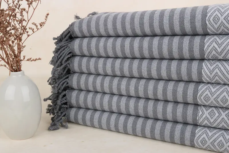 Toalla de playa de algodón orgánico gris claro, diseño de rombos, 40 x 71 pulgadas