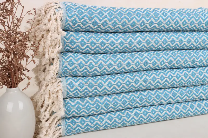 Toalla de playa de algodón orgánico con estampado de rombos turquesa, 40 x 71 pulgadas