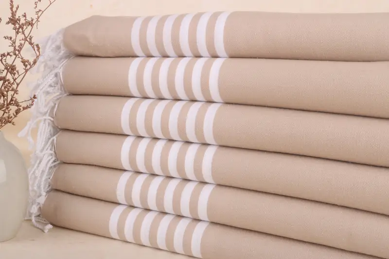 Toalla de playa con monograma de algodón turco, rayas beige, 40 x 71 pulgadas