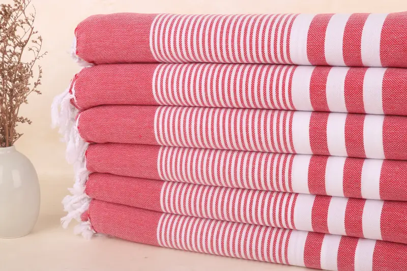 Toalla de playa de toalla de algodón roja, secundaria beige, 40 x 71 pulgadas