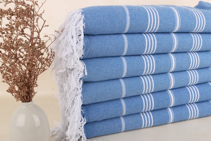 Toalla Turca Tejida a Mano de Algodón Orgánico Saxofón Rayas Azules, 40x71 Pulgadas