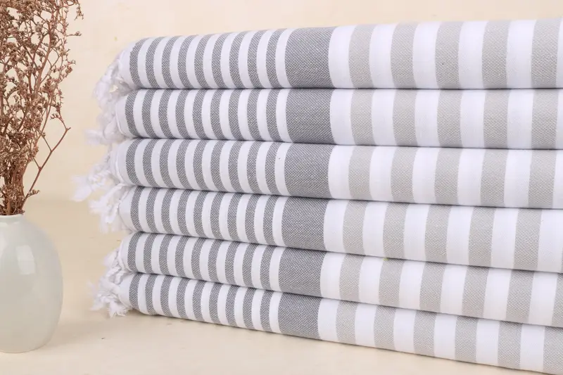 Toalla de Playa de Algodón Orgánico a Rayas Gris Oscuro-Gris Claro, 36x67 Pulgadas
