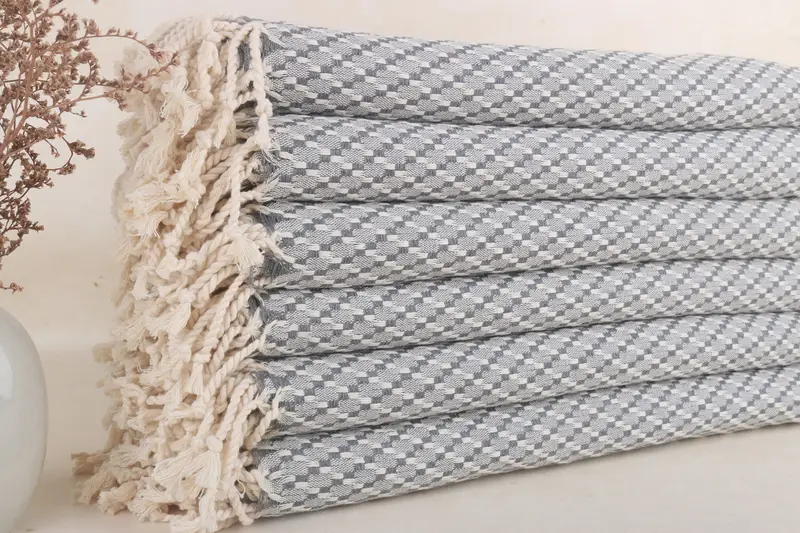 Toalla de algodón turco geométrica gris oscuro, 40x67 pulgadas