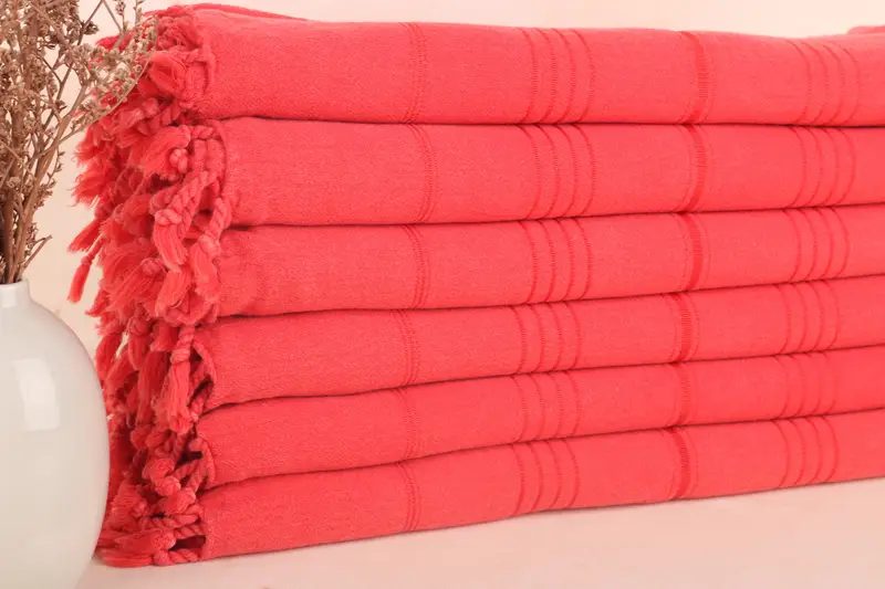 Toalla turca personalizada con monograma rojo, beige, 36 x 63 pulgadas