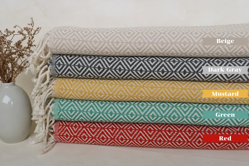 Toalla de playa de algodón orgánico Diamond Towel Beige, 40x71 pulgadas