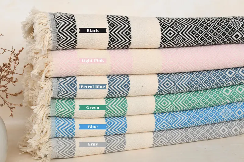 Toalla turca de playa de algodón con forma de diamante, color beige orgánico, 40 x 71 pulgadas