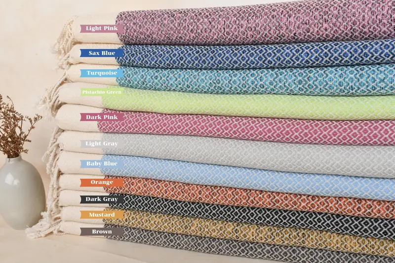Toalla de playa de algodón orgánico con estampado de rombos beige, 36 x 75 pulgadas