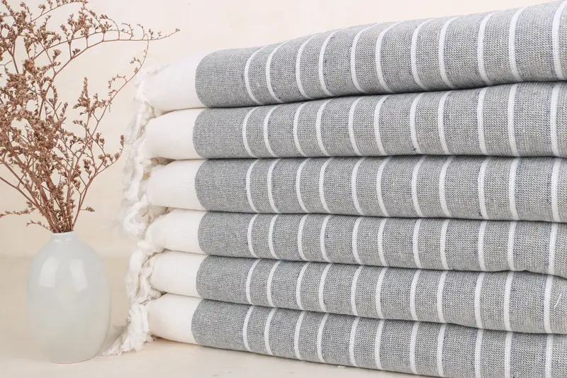 Toalla de playa turca de rizo a rayas verde caqui, 40 x 67 pulgadas