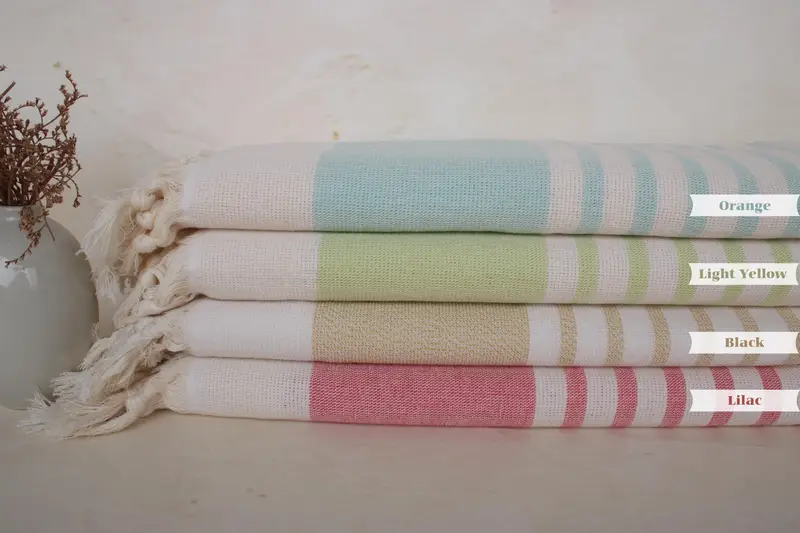 Toalla de Playa Personalizada de Algodón Turco Rayas Beige, 36x63 Pulgadas
