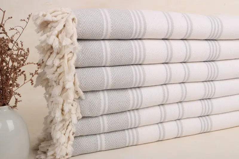 Toalla de playa de algodón natural gris diamante hecha a mano, 40 x 71 pulgadas