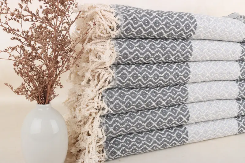 Toalla de playa turca gris oscuro-gris claro diamante, 40x71 pulgadas