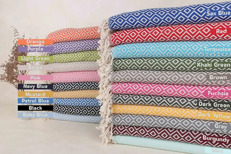 Toalla de playa turca personalizada con forma de diamante, algodón orgánico, beige, 40 x 71 pulgadas