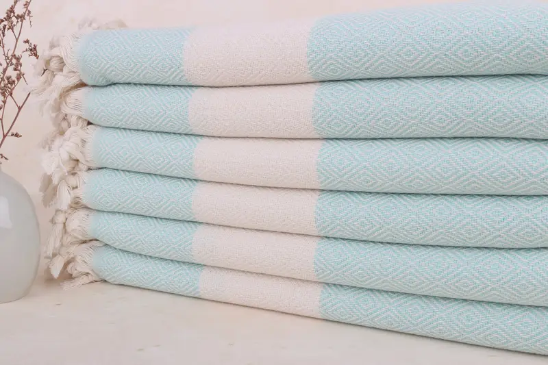 Toalla de playa turca personalizada con diamantes de menta, 40 x 71 pulgadas, color beige