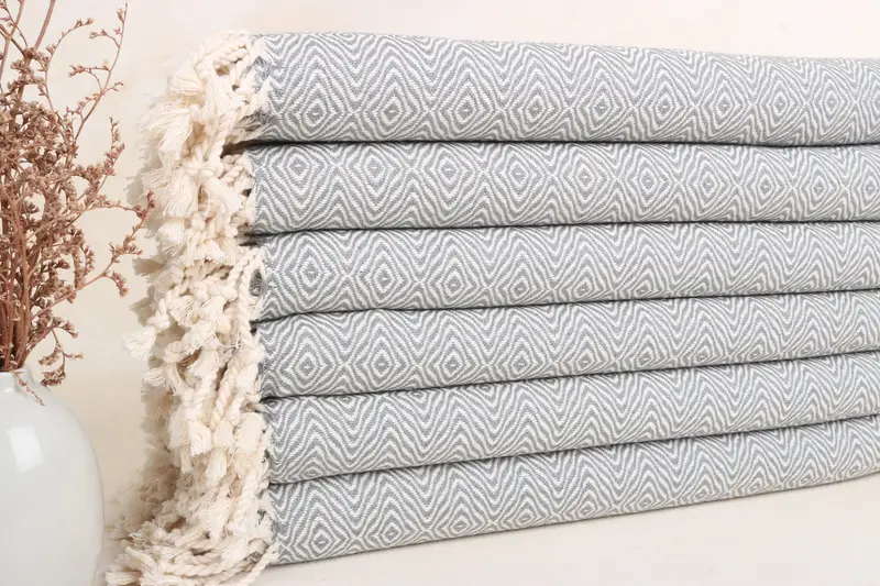 Toalla Zigzag Diamond con monograma de algodón turco, color gris oscuro, 40 x 71 pulgadas