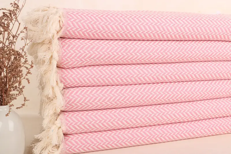 Toalla de cocina Monogram, toalla de té Chevron, algodón rosa polvo claro de 18x36 pulgadas