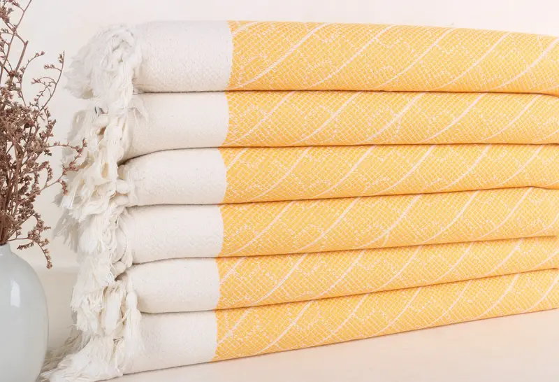 Toalla de té geométrica, toalla de mano de algodón turco, monograma, mostaza, 18x36 pulgadas