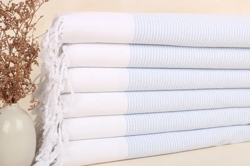 Paño de cocina de algodón turco personalizado, azul bebé con rayas beige, 18 x 40 pulgadas