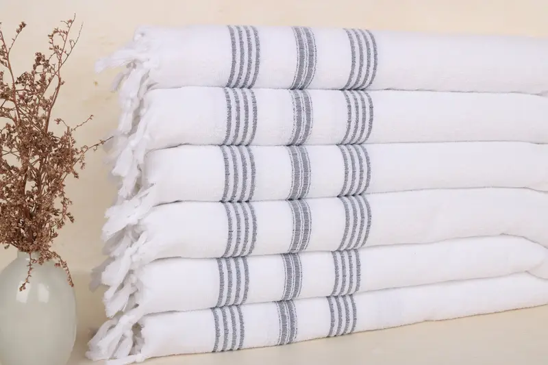 Toalla de mano de algodón turco a rayas azul marino, 18 x 40 pulgadas, acento beige