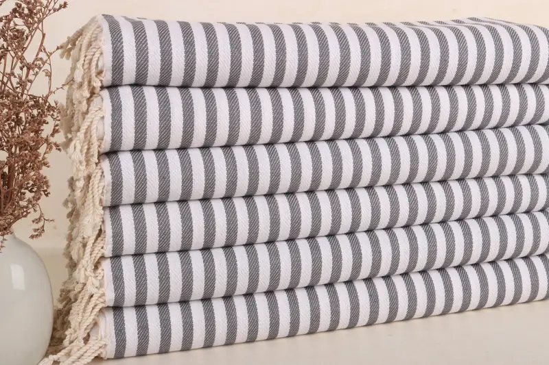 Toalla de Mano Personalizada Algodón Turco Rayas Gris Oscuro, 18x40 Pulgadas