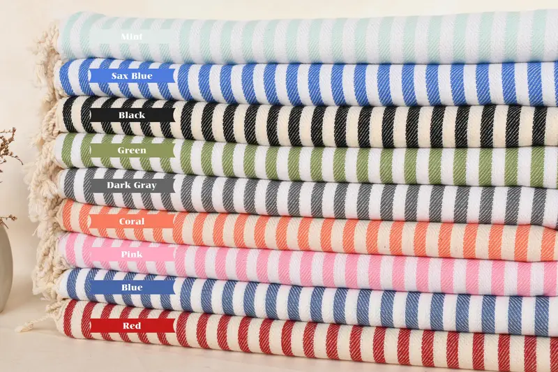 Toalla de Mano Turca de Algodón a Rayas Beige, 18x40 Pulgadas
