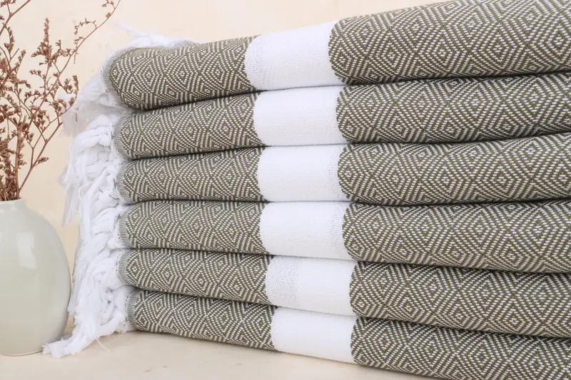 Toalla turca personalizada con monograma de diamante verde caqui, 40 x 71 pulgadas