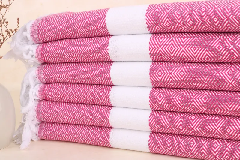 Toalla de playa turca personalizada con diamantes fucsia, algodón orgánico, 40 x 71 pulgadas