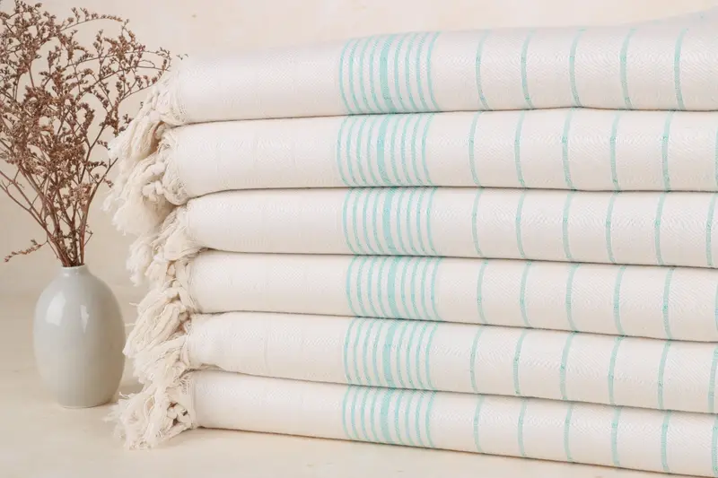 Caracterizada por una absorbencia superior, la toalla de playa turca está tejida con algodón turco 100 % orgánico, lo que garantiza una rápida absorción de la humedad y una textura suave. La toalla, que mide 100 x 180 cm (40 x 71 pulgadas) con una ligera tolerancia de 1 a 2,5 cm debido a su naturaleza artesanal, pesa 370 gramos, lo que proporciona un equilibrio entre ligereza, comodidad y durabilidad. La personalización del bordado está disponible a pedido y ofrece opciones para nombres, logotipos, fechas o iniciales personalizados. Las toallas...