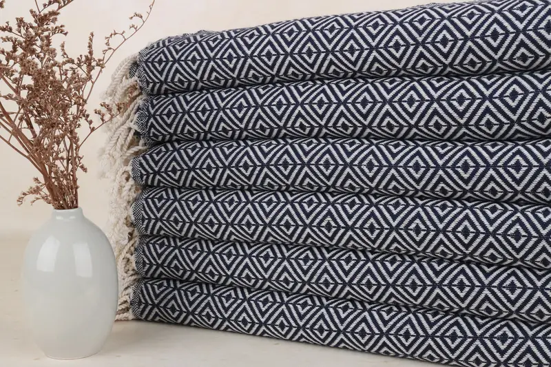 Toalla de playa turca Diamante azul marino, 40x67 pulgadas Monograma Algodón orgánico
