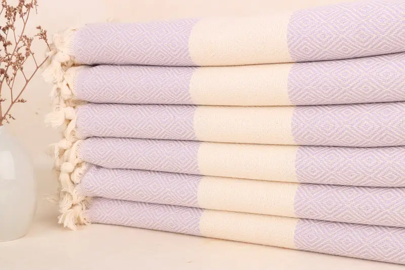 Toalla de playa bordada de algodón turco con diamante lila, 40 x 71 pulgadas
