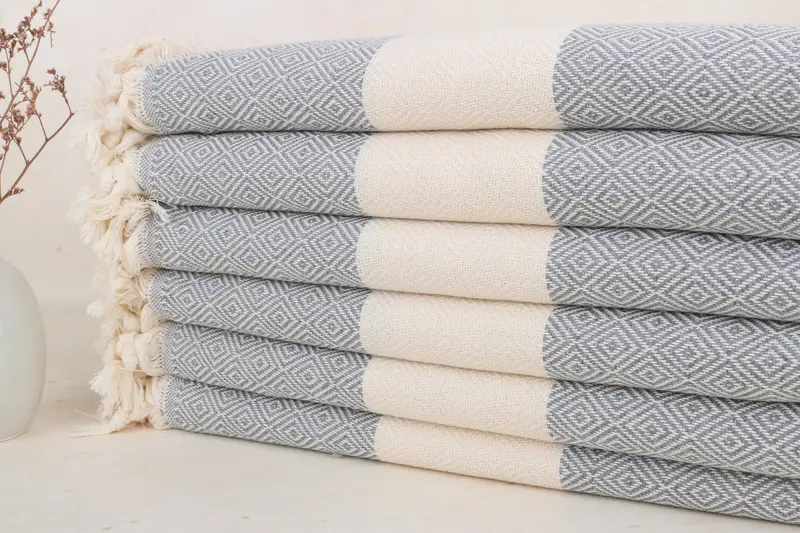 Toalla de playa con monograma, algodón turco gris, diseño de rombos, 40 x 71 pulgadas
