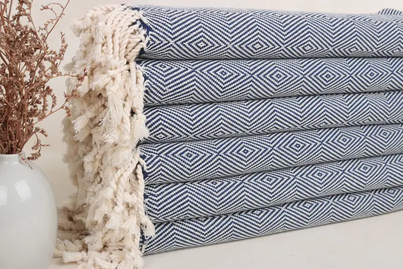 Toalla turca de playa de algodón azul marino, toalla de diamantes, 40 x 74 pulgadas