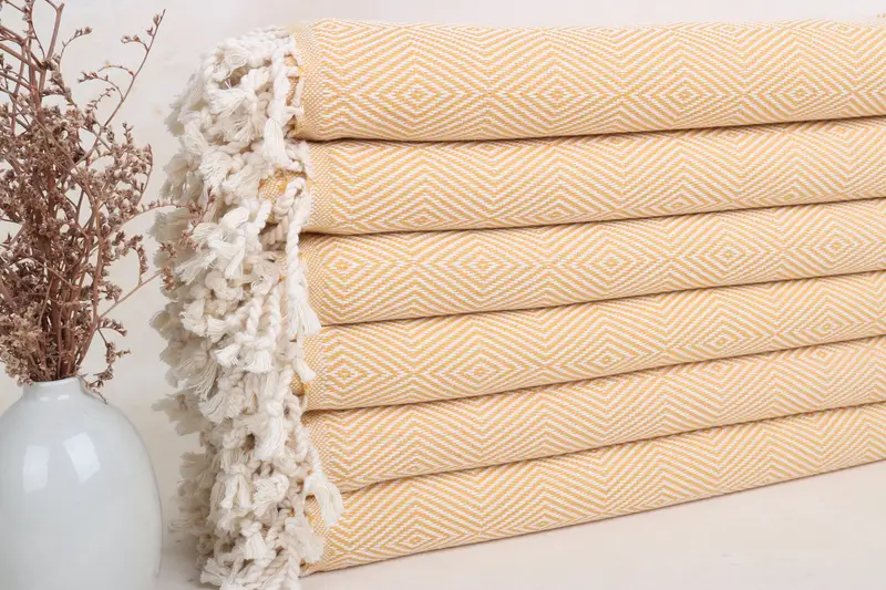 Toalla de playa de algodón turco, color beige mostaza, 40 x 74 pulgadas
