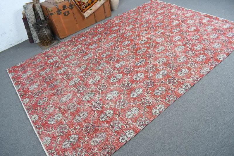 Alfombra vintage de 6,2x9,1 pies, alfombra turca, alfombra de lana persa roja