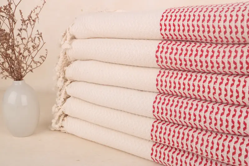 Toalla de playa turca con estampado de diamantes, algodón rojo, 40 x 75 pulgadas