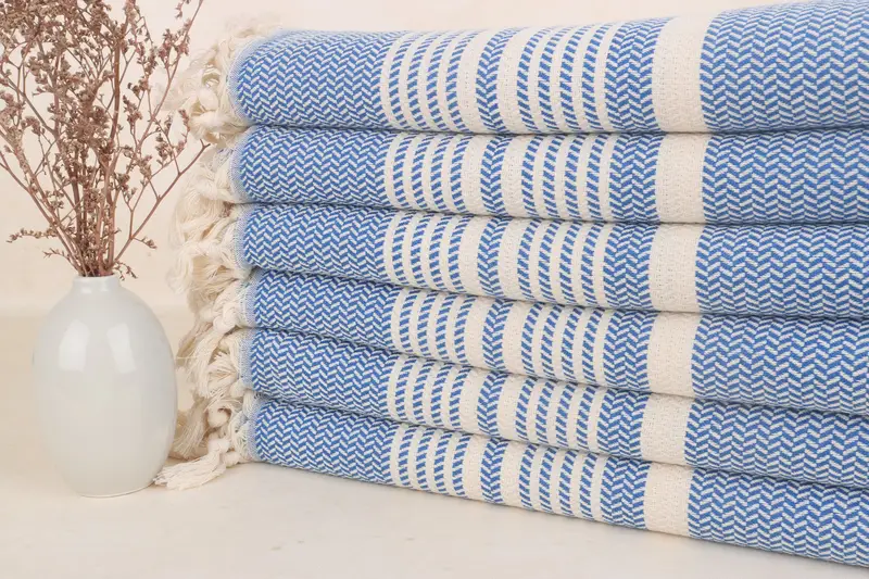 Toallas turcas de playa con rayas azules, algodón orgánico, 40 x 71 pulgadas