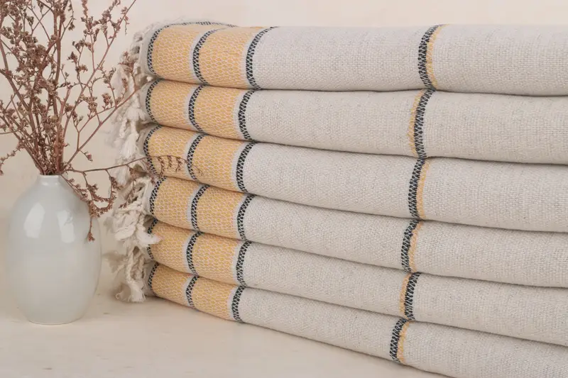 Toalla de playa personalizada de algodón turco con rayas mostaza, 36 x 71 pulgadas