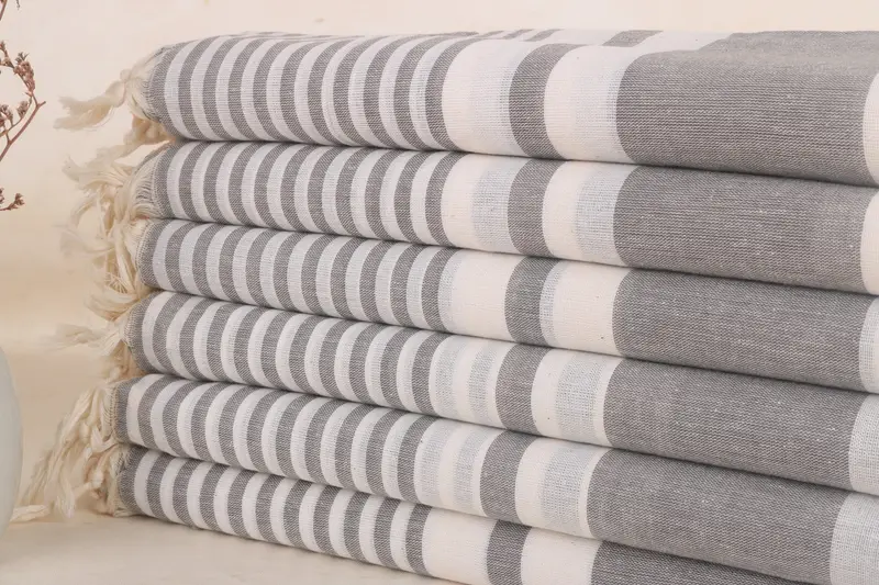 Toalla de playa turca a rayas gris oscuro, 100% algodón orgánico, 40 x 71 pulgadas