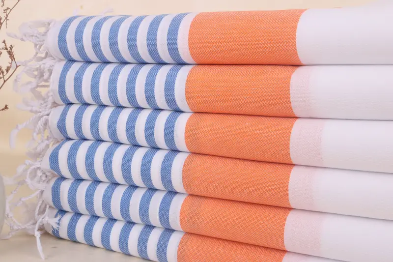 Toalla de playa turca personalizada Saxofón azul-naranja a rayas, 40x71 pulgadas